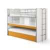 BONNY hoogslaper oranje. De lattenbodem is inclusief. Dit bed spaart ruimte. De hoogslaper bestaat uit 2 bedden, rolbed en bureau. De ladder kan aan beide zijden gemonteerd worden. Het bureau, onderste bed en rolbed kan worden uitgetrokken.