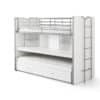 BONNY hoogslaper wit. De lattenbodem is inclusief. Dit bed spaart ruimte. De hoogslaper bestaat uit 2 bedden, rolbed en bureau. De ladder kan aan beide zijden gemonteerd worden. Het bureau, onderste bed en rolbed kan worden uitgetrokken.