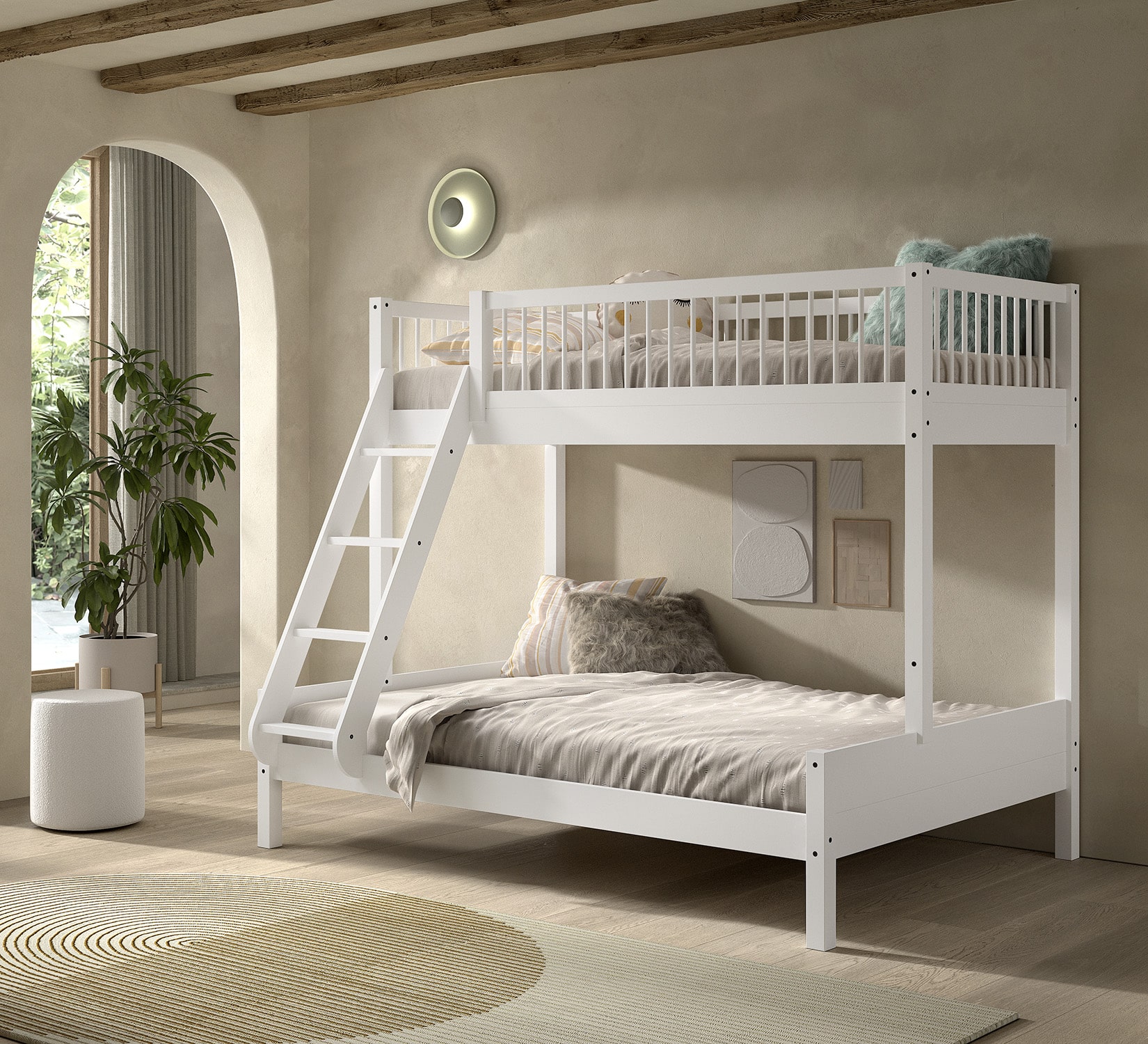 Het FORREST BEECH familiebed (140 x 200 cm + 90 x 200 cm) in wit is vervaardigd uit hoogwaardige kwalitatieve Europese beuk. Het ontwerp van dit stapelbed is smaakvol maar ook praktisch en beschikt over 2 slaapplaatsen. De ladder kan zowel links als rechts gemonteerd worden. De FORREST collectie is ontworpen met oog voor detail en straalt kwaliteit uit op elk niveau.