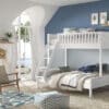 Het SCOTT familiebed (140 x 200 cm + 90 x 200 cm) is wit gelakt en vervaardigd uit massief Scandinavisch grenen hout. Dit bed garandeert maximale slaapcapaciteit met minimale ruimte. Het bovenste bed bevat een slaapplaats van 90 x 200 cm en onderaan is dit 140 x 200 cm. Er kan optioneel een lade toegevoegd worden. Er kan gekozen worden voor 1 grote bedlade die kan gebruikt worden als extra slaapplaats voor logees, of 2 kleinere lades voor het opbergen van speelgoed, boeken, beddengoed,…
