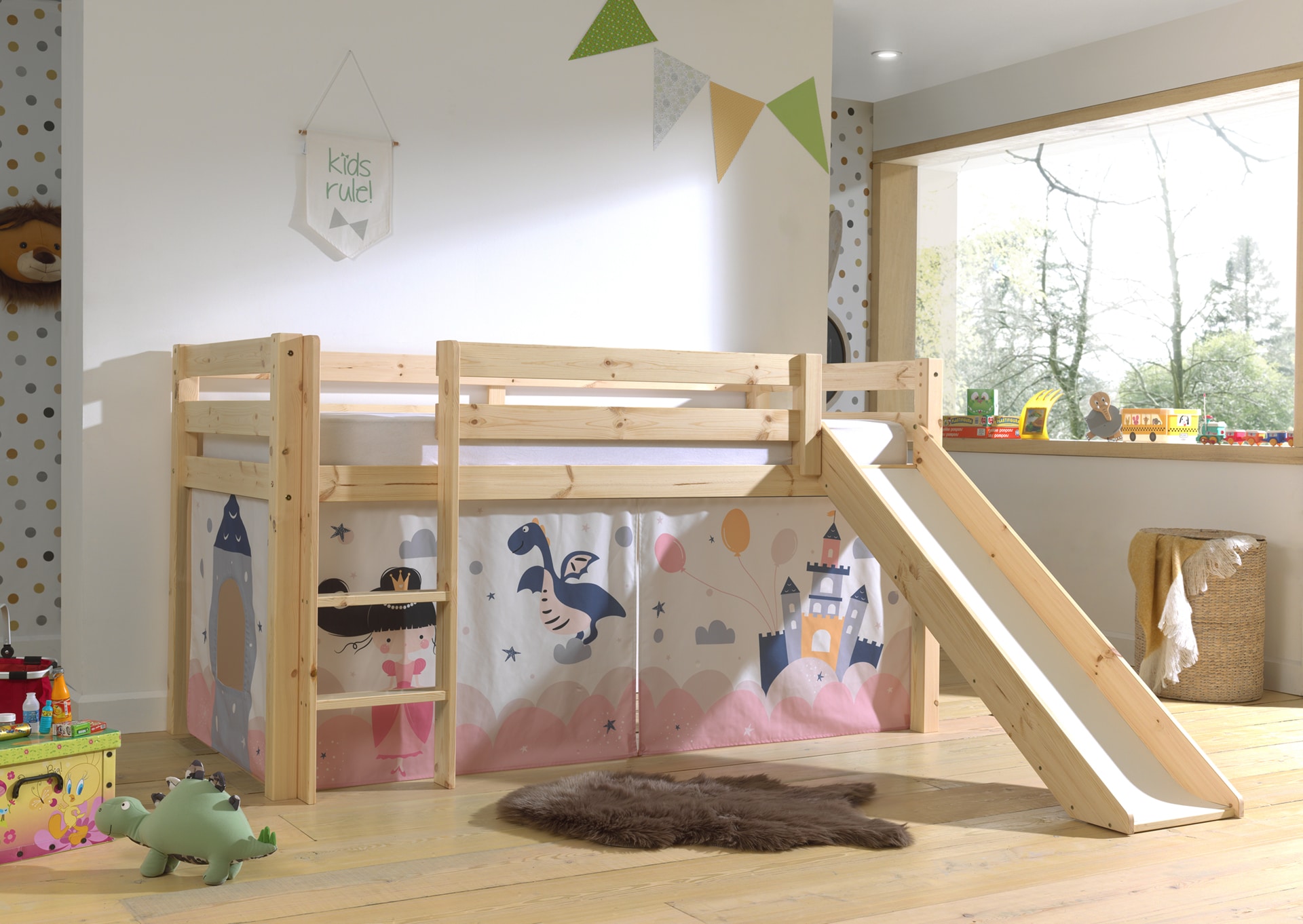 Het speelgordijn in het thema PRINCESS SOPHIE is de perfecte aanvulling op de PINO / SCOTT halfhoogslapers (H115CM). Kinderen genieten met volle teugen van hun verborgen speelparadijs onder hun bed!